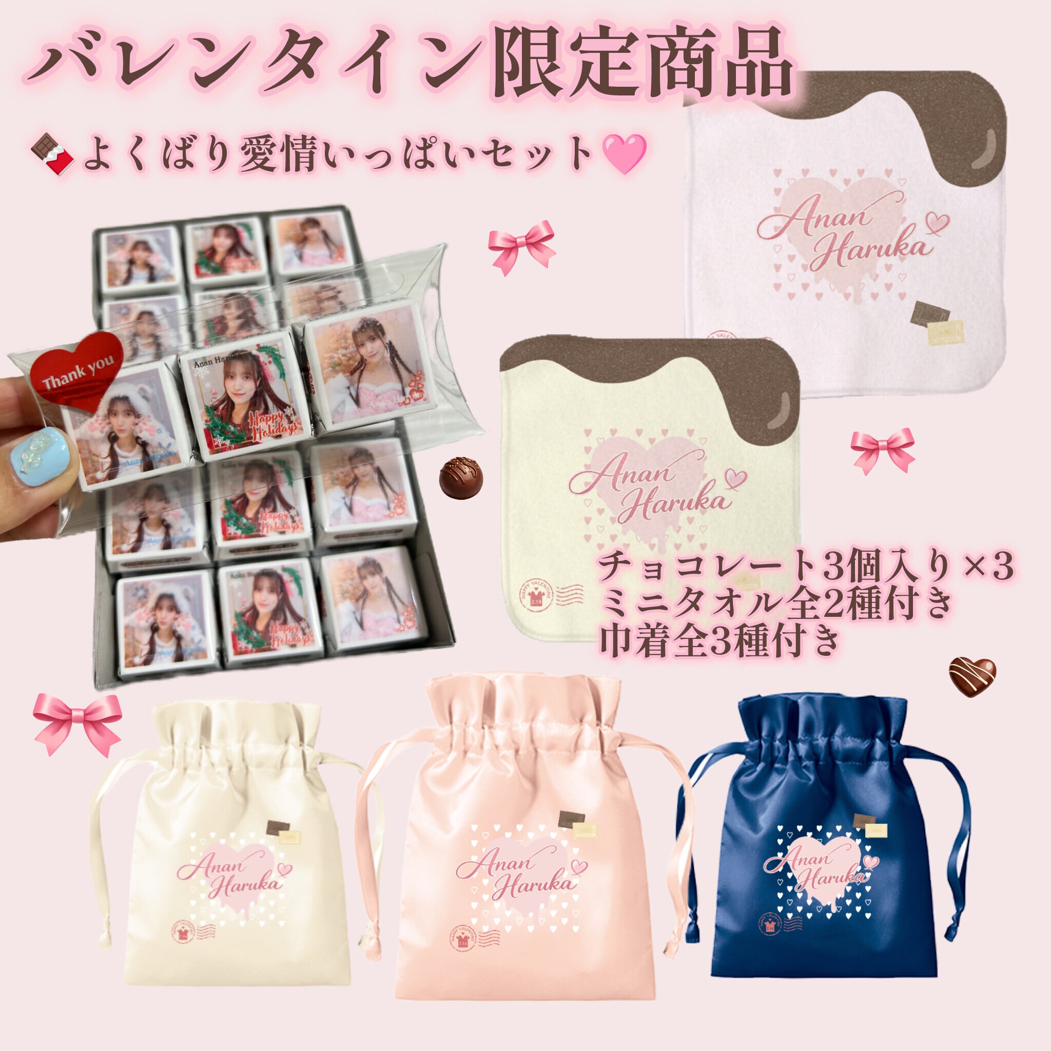 よくばり愛情いっぱいセット【バレンタイン限定】チョコ9個+ミニタオル+巾着